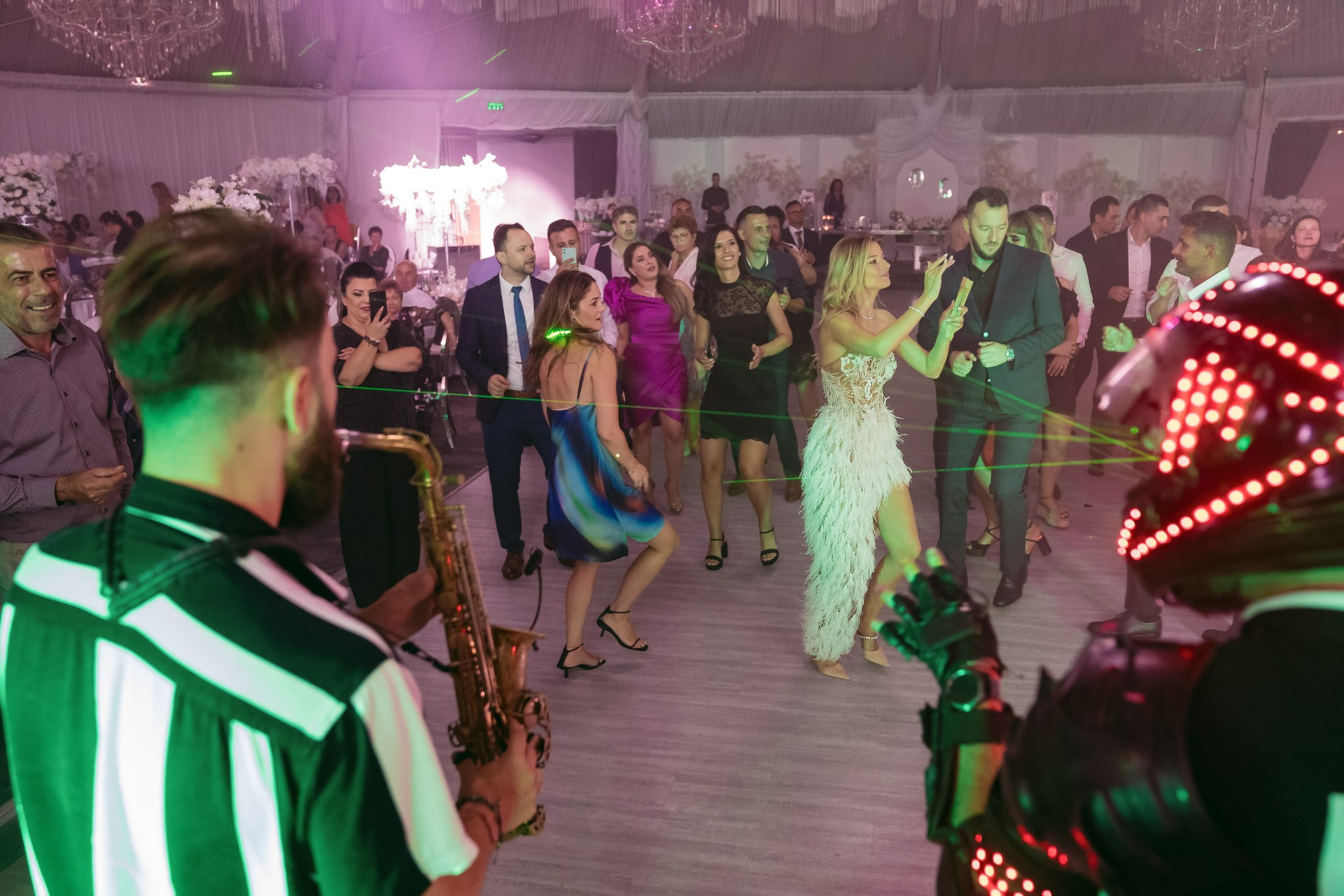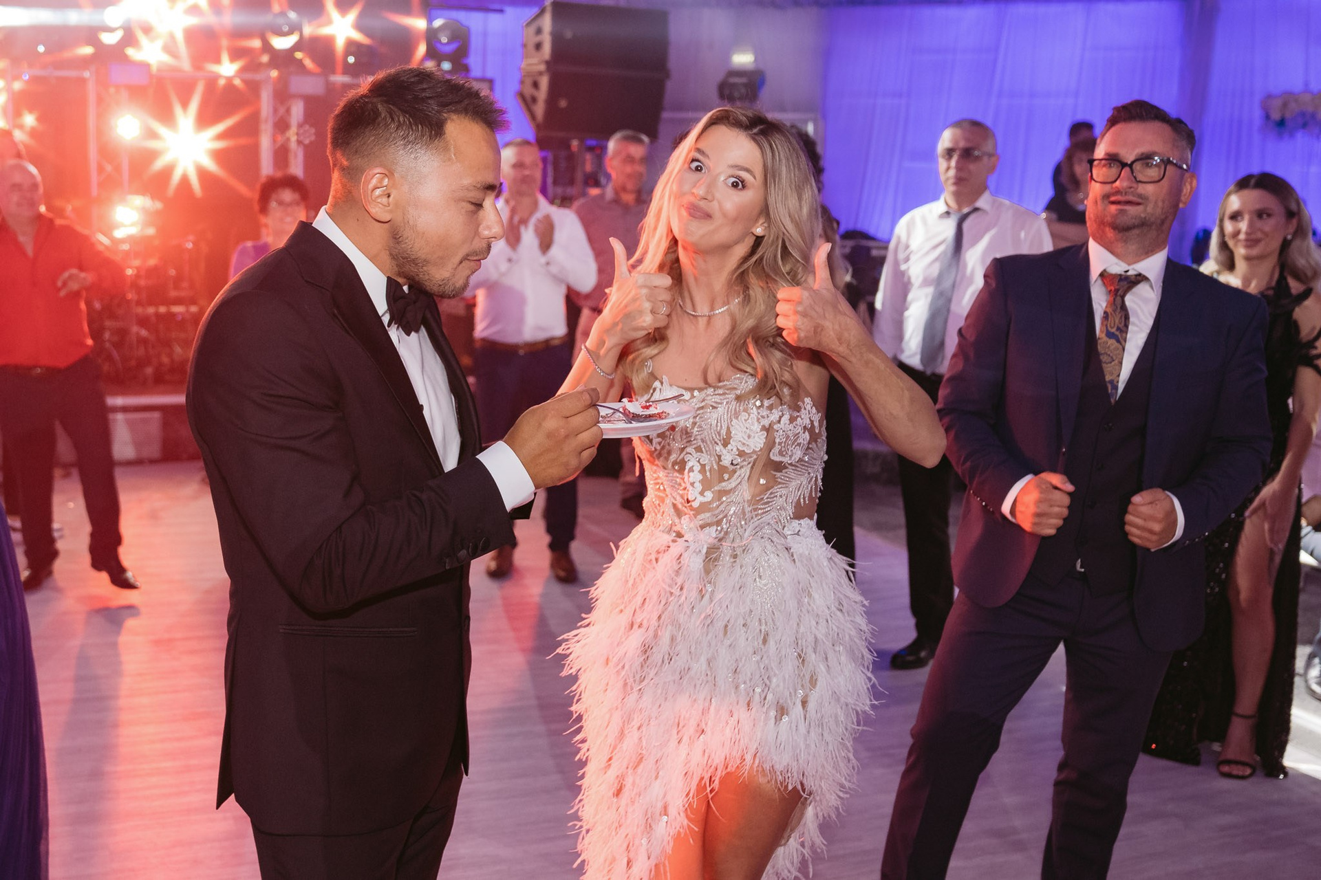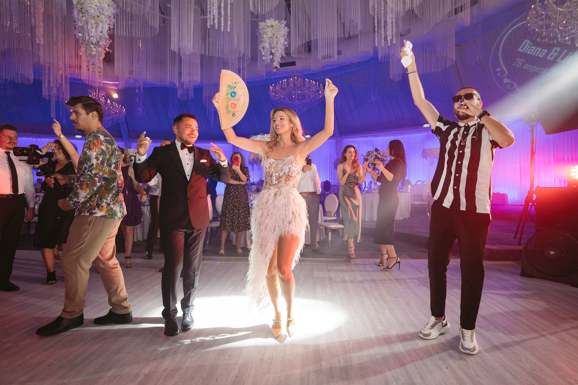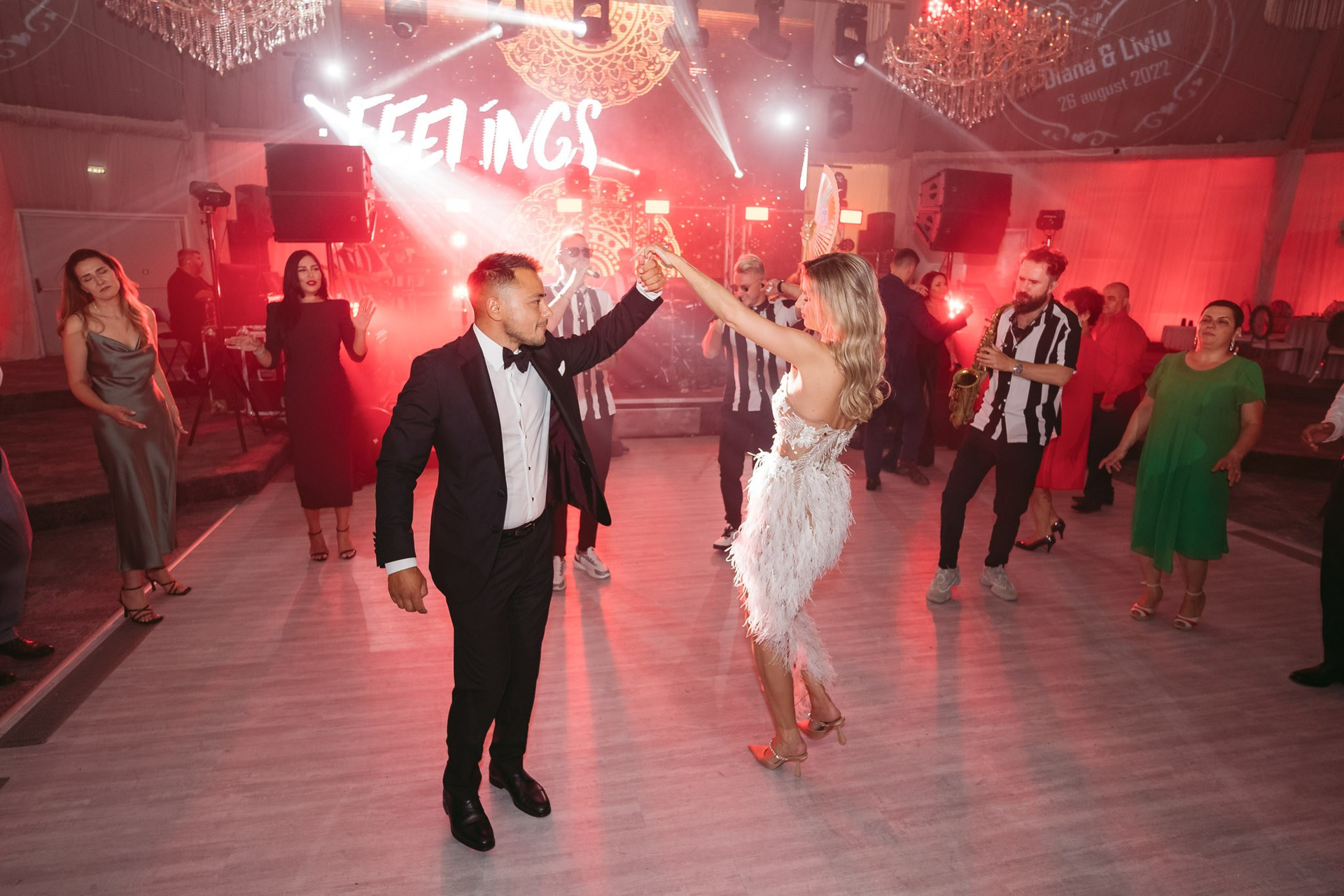 Ziua Dianei și a lui Liviu a fost o adevărată explozie de bucurie, celebrată într-un decor spectaculos la EGO Ballroom Mamaia. De la emoția primilor pași pe ringul de dans și până în zori de zi, atmosfera a fost una electrică, dominată de zâmbete și fericire pură. Responsabili cu spectacolul au fost cei de la Trupa Feelings, care au transformat petrecerea într-un concert live incendiar. Ringul a fost neîncăpător, iar invitații nu s-au oprit din dansat, energia trupei fiind ingredientul magic care a făcut ca această nuntă să fie cu adevărat epică. Casă de piatră, Diana și Liviu! Să aveți o viață la fel de vibrantă și plină de ritm precum a fost noaptea nunții voastre!